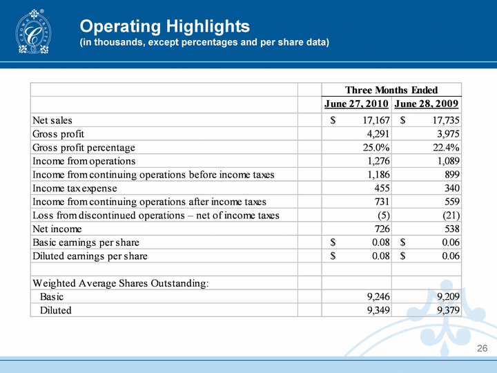 | Operating Highlights (in thousands, except percentages and per share data) 26 |