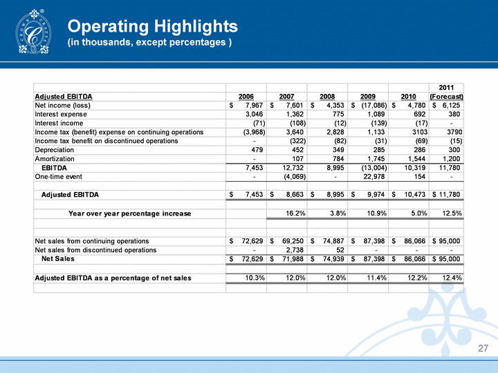 | Operating Highlights (in thousands, except percentages ) 27 |