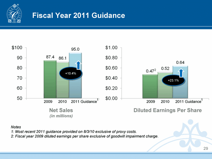 | 29 Fiscal Year 2011 Guidance +10.4% Notes 1: Most recent 2011 guidance provided on 8/3/10 exclusive of proxy costs. 2: Fiscal year 2009 diluted earnings per share exclusive of goodwill impairment charge. 2009 2010 2011 Guidance 2009 2011 Guidance 2010 +23.1% Diluted Earnings Per Share Net Sales (in millions) $ 1 1 |