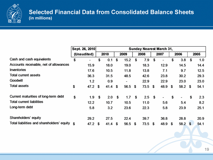 | Selected Financial Data from Consolidated Balance Sheets (in millions) 19 |